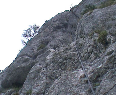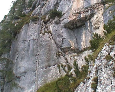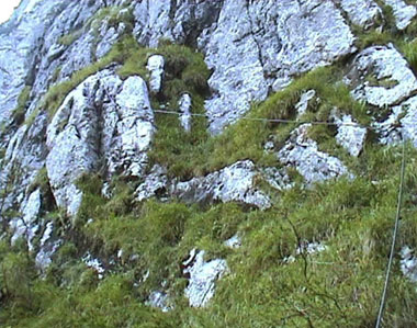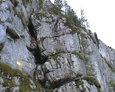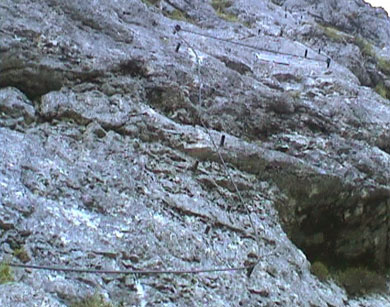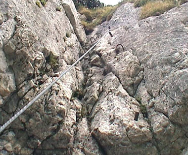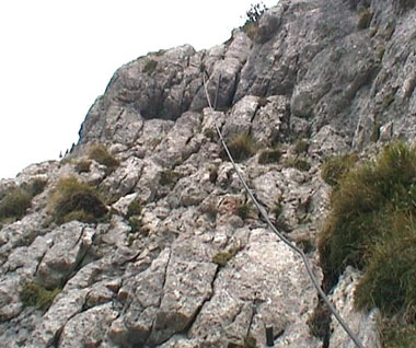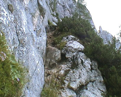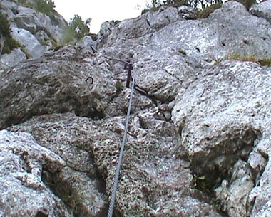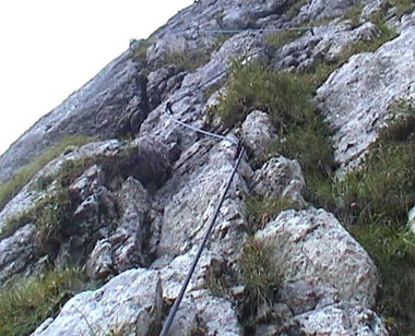 Od parkoviště přejdeme silnici a od tabule s popisem klettersteigu stoupáme značenou cestou vzhůru. Nejprve vzhůru, pak šikmo úbočím. Na loučce u chatky pozor - je nutno odbočit vlevo, značená cesta vede vpravo. Zde již mírným stoupáním k nástupu.